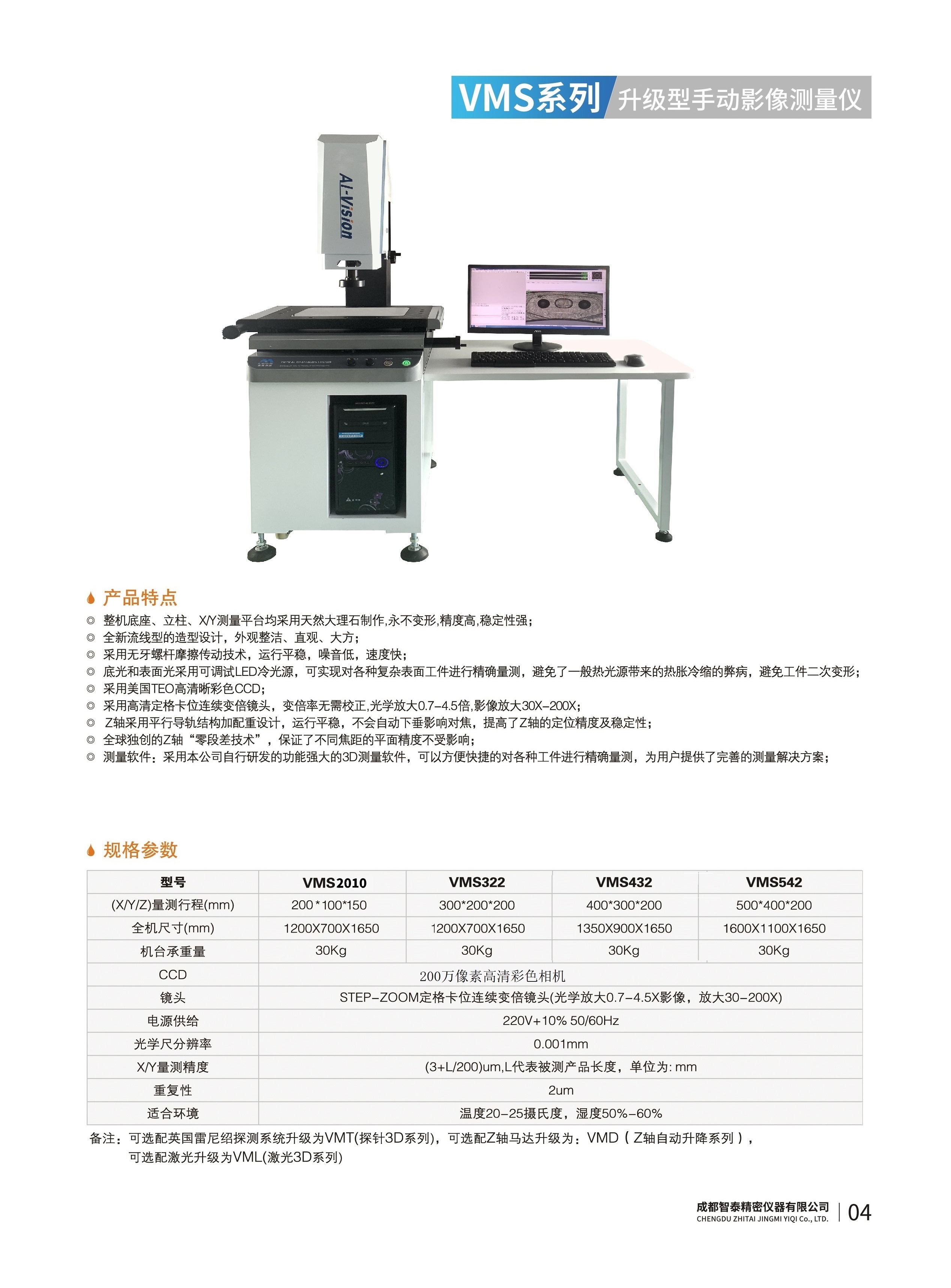 成都智泰精密儀器有限公司專(zhuān)注于精密測(cè)量?jī)x器,人工智能,智能制造領(lǐng)域,專(zhuān)業(yè)從事智能視覺(jué)自動(dòng)化檢測(cè)解決方案的貿(mào)易型企業(yè)。公司成立于2011年,位于天府之國(guó)成都,現(xiàn)有行業(yè)精英十余人,辦公倉(cāng)儲(chǔ)面積200余平米。 公司主要產(chǎn)品為精密光學(xué)影像測(cè)量?jī)x,精密輪廓形狀測(cè)量?jī)x,精密機(jī)器人定位系統(tǒng),精密智能視覺(jué)尺寸檢測(cè)儀器,精密表面缺陷智能檢測(cè)設(shè)備,工業(yè)工程特種機(jī)器人。 公司憑借過(guò)硬的技術(shù)實(shí)力和產(chǎn)品方案,率先進(jìn)入智能視覺(jué)自動(dòng)化檢測(cè)領(lǐng)域,推廣以精密智能視覺(jué)自動(dòng)化檢測(cè)為基礎(chǔ)的機(jī)器人自動(dòng)化應(yīng)用,公司不斷整合上下游的資源,擁有巨大的全產(chǎn)業(yè)鏈優(yōu)勢(shì)??蛻?hù)群體覆蓋了我國(guó)精密制造業(yè)的多數(shù)領(lǐng)域,包括航空、航天、軍工、汽車(chē)、新能源、光伏、食品,精密電子、精密機(jī)械、模具、PCB、LCD、五金、塑膠、醫(yī)療、教育、計(jì)量及科研院所等行業(yè)。 公司創(chuàng)新的產(chǎn)品能滿(mǎn)足生產(chǎn)與制造行業(yè)客戶(hù)的要求,訓(xùn)練有素的工程師能及時(shí)提供多種技術(shù)服務(wù),如解...